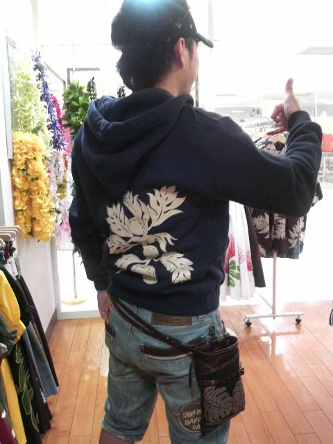 オハナのナニプアさんが出店していたので 私たちスタッフもお手伝いに参加してました(^-^) ということで ナニプアのNaotoさんをご紹介です☆ まずは (土)スタッフYurikoさんと~会場にて 忙しい中 働くNaotoさんにお願いし写真撮影! で、今日 本拠地?に戻る前にピカケオハナまで足をのばしてくれたので 私と記念撮影(笑) マカマカさんで購入したというTシャツが渋く~後ろ姿いただきましたぁ~ そして ここ数日の北海道が寒かったらしいNaotoさんが気になったのは マカマカさんの人気ウルパーカー♪ 購入記念に もう一枚 後ろ姿にてポーズ!! たしかに 今の気温は道産子にも堪えますよね… 夏風邪でダウンしている方多いみたいなので みなさんも気をつけてくださいね あれっ 腰あたりに見えるのは… パラダイスさんのバッグだぁ~♪ 一緒にご飯へ行った時の出来事 お酒メニューには お酒の名前とご当地が明記されていて… なんと「千葉県松戸」の文字が! お酒名は→『麦盛り』 最後まで『麦盛り』を呑んでいたNaotoさんがお茶目だったので(笑) 画像ボケボケですが記念にアップしちゃいますね(^_-) Naotoさん ありがとうございましたぁそして お疲れ様でした☆ 〈Sayuri〉 PR