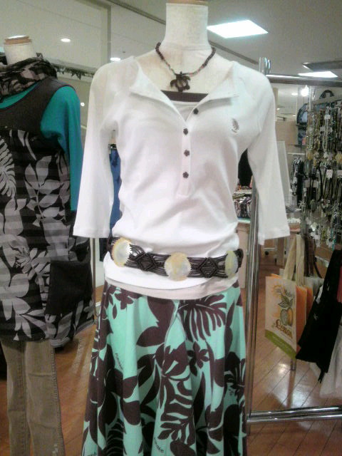 外はこんもり雪ですが… 巷の「SALE」も一段落 まだまだ寒い日が続きますが 気分は春というか~ 新しい年も迎えすでに気分は「春」=『白』なのかな(笑) これがセレクトショップの醍醐味(^^) お気に入りの『白』を集めてみました ★前にも一度紹介している「マカマカ」のウルパーカーは人気商品! グレー、紺、黒の3色展開でしたが今回は白が初登場 ★「ナニプア」からは、パウスカートとTシャツをご紹介 白地に白のハイビスカス柄のTシャツは金枠が入るだけでシンプルかつ素敵ですよね(^^) そして ニューフェイス〈Miyuki〉も久しぶりに笑顔で登場! ★最後はピカケのカットソー スカートの柄もトップスを白にすることで爽やかに~ あなたのマイブームカラーはありますか? 私はしばらく『白』でいきます!(笑) 〈Sayuri〉