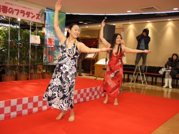 実はなんと!このユニットが発足したのは2007年夏からでした。 この年に参加した某イベントで「ホロホロカー」と言う曲を 二人で踊ったのがきっかけで、度々躍らせていただいてます。 この曲はハワイではペアで踊っていることが多いので 私たちもペアになって踊ってみたら、ハマッちゃったんです。 Sayuri店長は見た目にも女性らしい風貌ですし、写真の通り女性役。 曲のテンポの早さから、私は男性役に任命され(立候補した感じもありますが) 私は男性になりきって?躍っています。 こんなペアはなかなか見る機会が無いと思うので、 毎回見てくださる皆さんに喜んでもらえてると思うのですが…(多分) 先日、京王プラザホテルで開催された「ワンデーアロハ」というイベントで 「ホロホロカー」をこの二人で踊ったのですが(写真の衣裳で) スタンバイしている時から「本物の男性が来ているの?」と勘違いされていたとか。 …そんなにはまってますか?? 〈Yuriko〉 PR