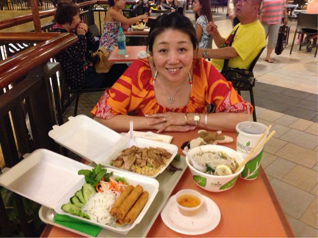この日は、ワイキキにあるコミュニティセンターで クム ナラニ ケアレ 先生が教えている フラレッスンに参加してきました(o^^o) まずは腹ごしらえ!(笑) レッスン前だし、ヘルシーに今回も アサイ ボール!^_−☆ アサイボールの写真って、きれいにトッピングされているからわかりずらいですが じつはアサイはこんな紫な感じ(笑) 毎回このレッスンを楽しみにしている私 私たちのようなビジターだけではなく、 ローカルな方たちと一緒にレッスンできるのも新鮮だし刺激にもなります なにより ナラニ先生のレッスンではいつも 「フラって楽しいもの」を思いださせてくれる貴重な時間 そして今回も素敵なフラダンサーとお知り合いになれました(o^^o) 中央が、トモコさん☆ 中央が、リエさん☆ お知り合いになった中でも トモコさんとリエさんは、意気投合もあり(笑)、レッスン後に一緒にランチに行きましたよ〜 リエさんのご主人も合流し、 会ったばかりの5人でしたが、 楽しい時間になりました(≧∇≦) これまた大好きな「カカアコ キッチン」でのプレートランチをペロリ! 皆さんとまた来週月曜にあるナラニ先生のレッスンでの再開を約束し一度解散しました ワードを物色した後、 アラモアナまで歩き、 またまた物色!(笑) 戦利品たちは後日アップしますね〜(≧∇≦) で、 そんなに空腹ではなくても 時間となれば食べたくなるわけで〜(笑) 始めてのベトナム料理に挑戦してみました(o^^o) これは次もありだな〜(笑) そして3日目に続く 〈Sayuri〉 |