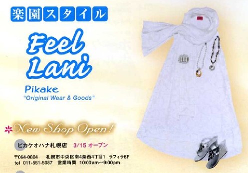 すでにオープンし1ヶ月が経過していて… あっという間の出来事です! この間になんと480名の方にお買い上げいただき(^o^) ご来店いただいた方を含めると(^-^) たくさんの方に足を運んでいただいたんだと 嬉しい気持ちでいっぱいです☆ それと同時に それだけ何か期待して来ていただいたはずなので 満足いただけたか気掛かりです 少しづつではありますが みなさんからの要望を今後の品揃えに生かしていけたらと思っています どんどんスタッフまでご意見お聞かせくださいね! 今日はもう一つ 嬉しい報告です(^-^)v 最新のフラレア(2009年5月号) ご覧になりましたか? 今回の「Pikake」掲載ページに 「ピカケオハナ札幌店」の名前が!! (拡大↓) おまけにフラレアホームページにも オープン情報として紹介されました☆ http://www.hulalea.com/index_shop_otoku.html フラレアは創刊号から全号揃えてある私にとって これはかなりの興奮する内容です 事件ですよ~ そして 身が引き締まる感じでもあり… 『頑張ります!』 ☆☆☆ まだ見ていない方は 本屋さん&ホームページへ→Go(^^)d <Sayuri>