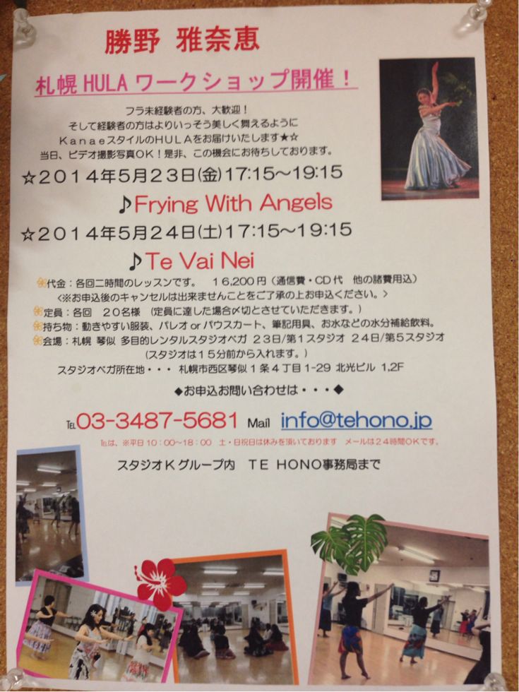 Momo先生のワークショップが 札幌で初開催!(≧∇≦) すご〜い^_−☆ 〔日時〕 2014年6月22日 日曜日 ① 9:30〜11:30 ② 13:30〜16:30 ✳︎ 定員 各18名 ✳︎ 完全予約制 ✳︎ 定員になり次第、締め切りになります 〔会場〕 エルプラザ 多目的室 ☆ワークショップは2パターンあり(o^^o) ⚪️チョーカータイプ〜針を使用 バックチャームとしてもご使用いただけます 写真の他にパープルもご用意しております ¥3800 ⚪️チョーカー&シュシュのセット〜 針を使用しないので、お子様と一緒に作れますよ〜 ¥4800 ✳︎ 当日の持ち物は、 針を使用する方は、各自 針とハサミと持ち帰りの袋をご用意ください 針無しの方は、ハサミと持ち帰りの袋をご用意ください 興味のある方、 質問、予約、などなど 窓口担当の井上様に直接お問い合わせくださいね^_−☆ 連絡先 携帯 09052252655 まで!! 〔Momo先生の経歴〕 ☆2002年 9月 ハワイへ語学&フラダンス留学し、リボンレイに出会い技術を習得。 ☆2006年 5月 HOKU CRAFT 設立。 ワイキキにリボンレイ携帯ストラップを広め雑誌、WEBで人気となる。 ☆2007年11月 日本でのワークショップを神戸、千葉、東京、神奈川にて開催。 毎年恒例となる。 ☆2008年 5月 第81回ホノルル レイデーコンテスト.リボンレイ部門で入賞。 ☆2010年 5月 第83回ホノルル レイデーコンテスト.リボンレイ部門で2作品受賞。 ☆2012年 5月 第85回ホノルル レイデーコンテスト.リボンレイ部門で受賞。 ☆2013年 5月 第86回ホノルル レイデーコンテスト.リボンレイ部門で受賞。 ☆2014月 5月 第87回ホノルル レイデーコンテスト.リボンレイ部門1位と3位受賞。 〈Sayuri〉