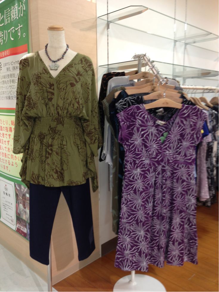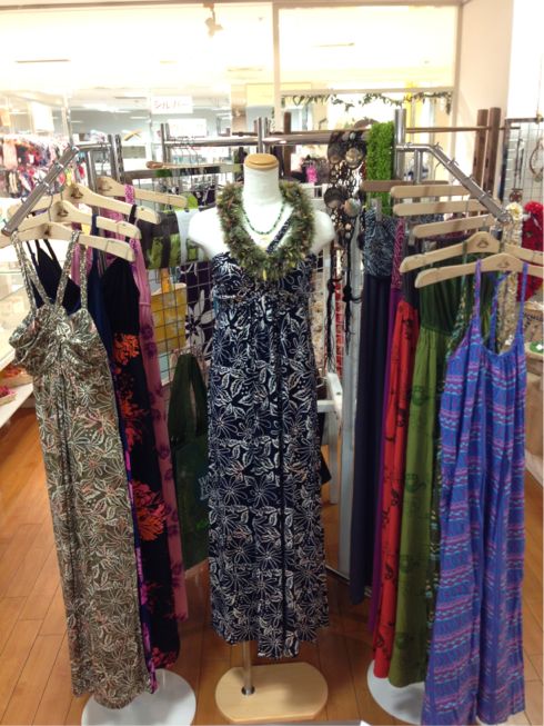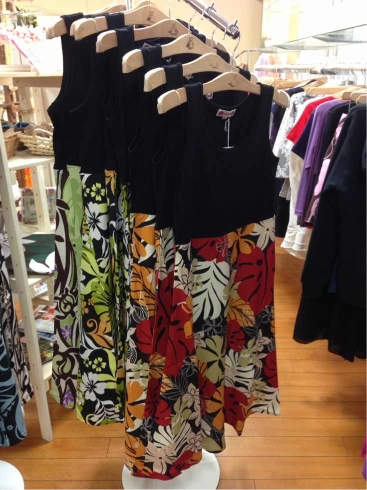 2週間、『パラダイス』商品に囲まれ、 華やかな店内でしたが…8月31日で今回の展開は終了! 加藤オーナー また札幌の「パラダイスファン」のために 納品よろしくお願いしま〜す(笑) バッグは淋しくなってますが… このままではありませんよ〜 近々、新しいブランドを展開予定(^_−)−☆ 詳細はまたご案内しますので もう少しお時間くださいね(*^^*) 今日は 『パラダイス』と入れ替わりに入荷した商品のご案内です 『ナニプア』は裏切らない!!(笑) この夏のヒット商品だった 「タンクトップ切替レーヨンワンピース」が新柄になって登場です☆ こちらが新柄3パターン! 新しい柄のディスプレイと、従来の人気柄はこちら(笑) 私たちもこれを着て踊ったりもして〜(笑) フラガールには使いやすい長さです☆ ナニプアといえば〜 ハワイ生地パウ! 今回も新作20枚が加わりました*\(^o^)/* いっきに『秋』モードですが 秋は新しく習い事を始める方も多い季節 一緒にフラしませんか?(笑) 〈Sayuri〉