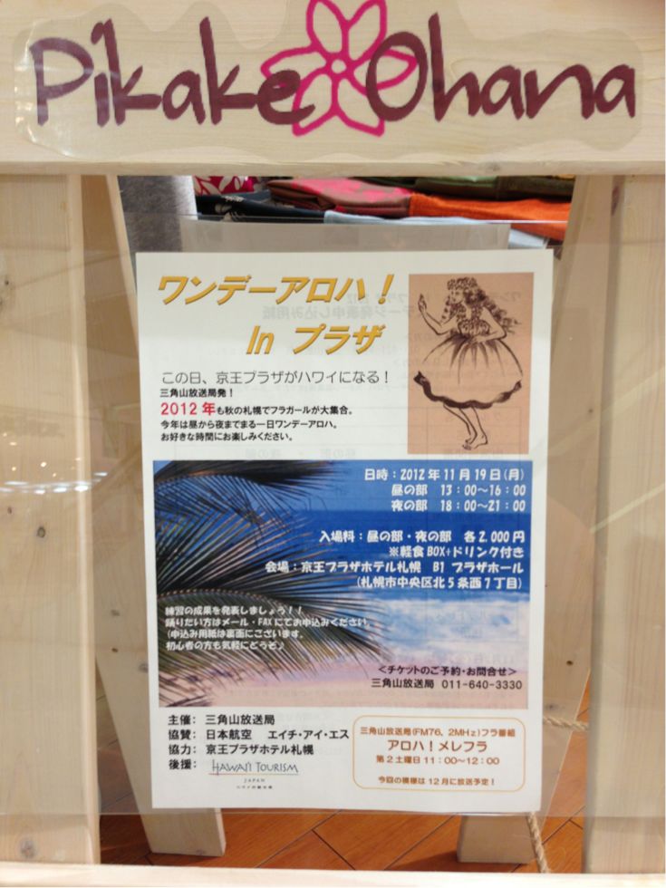 × [PR]上記の広告は3ヶ月以上新規記事投稿のないブログに表示されています。新しい記事を書く事で広告が消えます。 以前から店内では告知していた 〈ワンデーアロハ! in プラザ〉 あっという間に前日です(*^^*) 「知らなかったぁ〜」という方のために詳細です⭐ 【日時】 2012年11月19日 (月) 昼の部 ➡ 13:00〜16:00 夜の部 ➡ 18:00〜21:00 【入場料】 昼の部、夜の部、各2000円 軽食BOX + ドリンク付 【会場】 京王プラザホテル札幌 B1 プラザホール 札幌市中央区北5条西7丁目 毎年恒例 フラガールが大集合!ですよ〜 札幌はとうとう雪になってしまいましたが(笑) みんなの熱気で雪なんて溶かしてしまえ〜的な? 明日はピカケオハナも初出店(^_−)−☆ 人気の商品や このイベントのために用意したレア商品もありますよ! ご期待くださ〜い♪ もちろん 通常通り、ラフィラも営業中(*^^*) 準備完了! この状態から➡どんな売場になるか? お楽しみに〜(^_−)−☆ 明日、会場でお待ちしてま〜す 〈Sayuri〉 PR