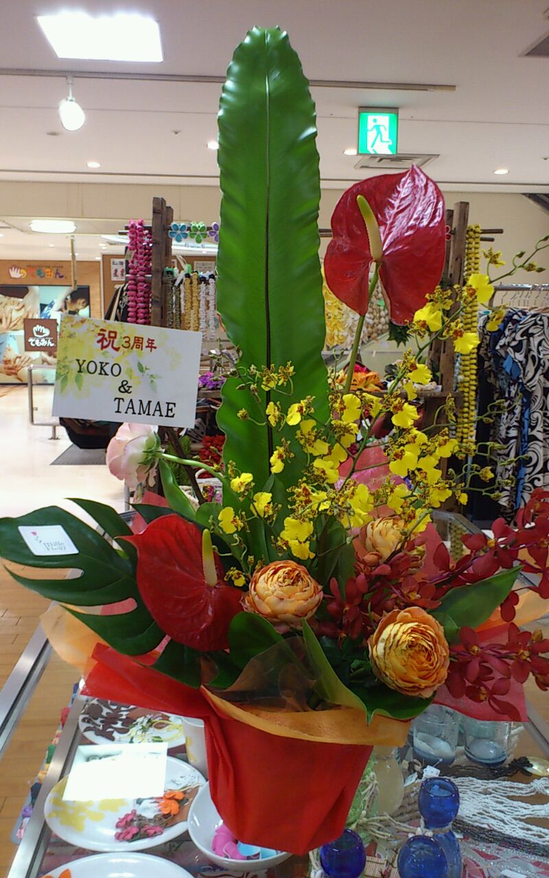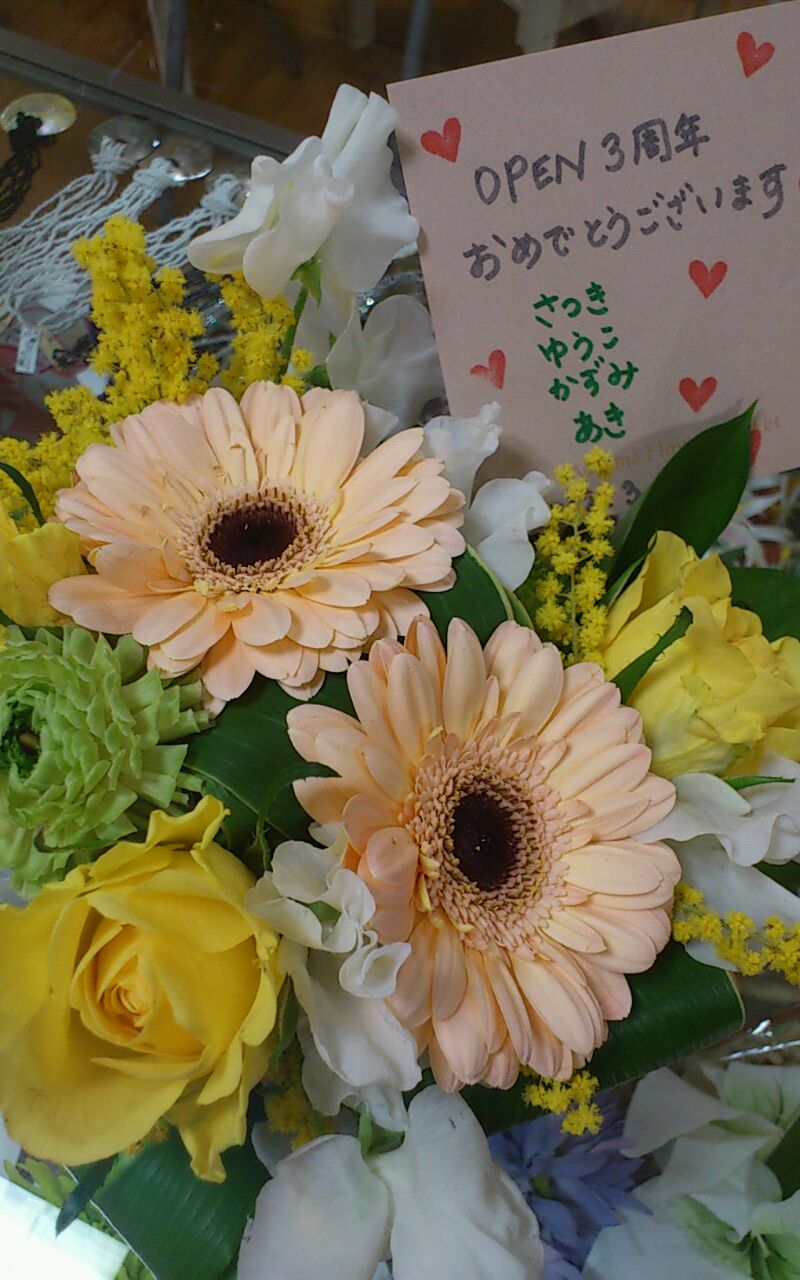 お陰様で 無事昨日3月15日(木) 『ピカケオハナ』オープンから 3周年を迎えました! 開店から たくさんのお客様に足を運んでいただいて… 本当に皆様に支えられて 今があるんだなぁ~と実感する1日でした オープン当時7ブランドでスタートした店が 皆様からの要望や希望をヒントに 3年たった今は→15ブランド そっかぁ! 支えられているというより 応援してくれている皆様と一緒に店作りしてるんだ!と 気付かされました… 応援してくれている皆様と リスペクトし続けて 居心地のいい空間 ワクワクする空間 探している何かがみつかる空間 目指して 頑張ります☆ 昨日はたくさんのお祝いの言葉いただき ありがとうございました いただいたお花などを記念にアップさせていただきますね♪ 私たちスタッフのキャラクターが物語る… 差し入れがたくさん! まさに 「花より団子」ってこのことかも… 〈Sayuri〉