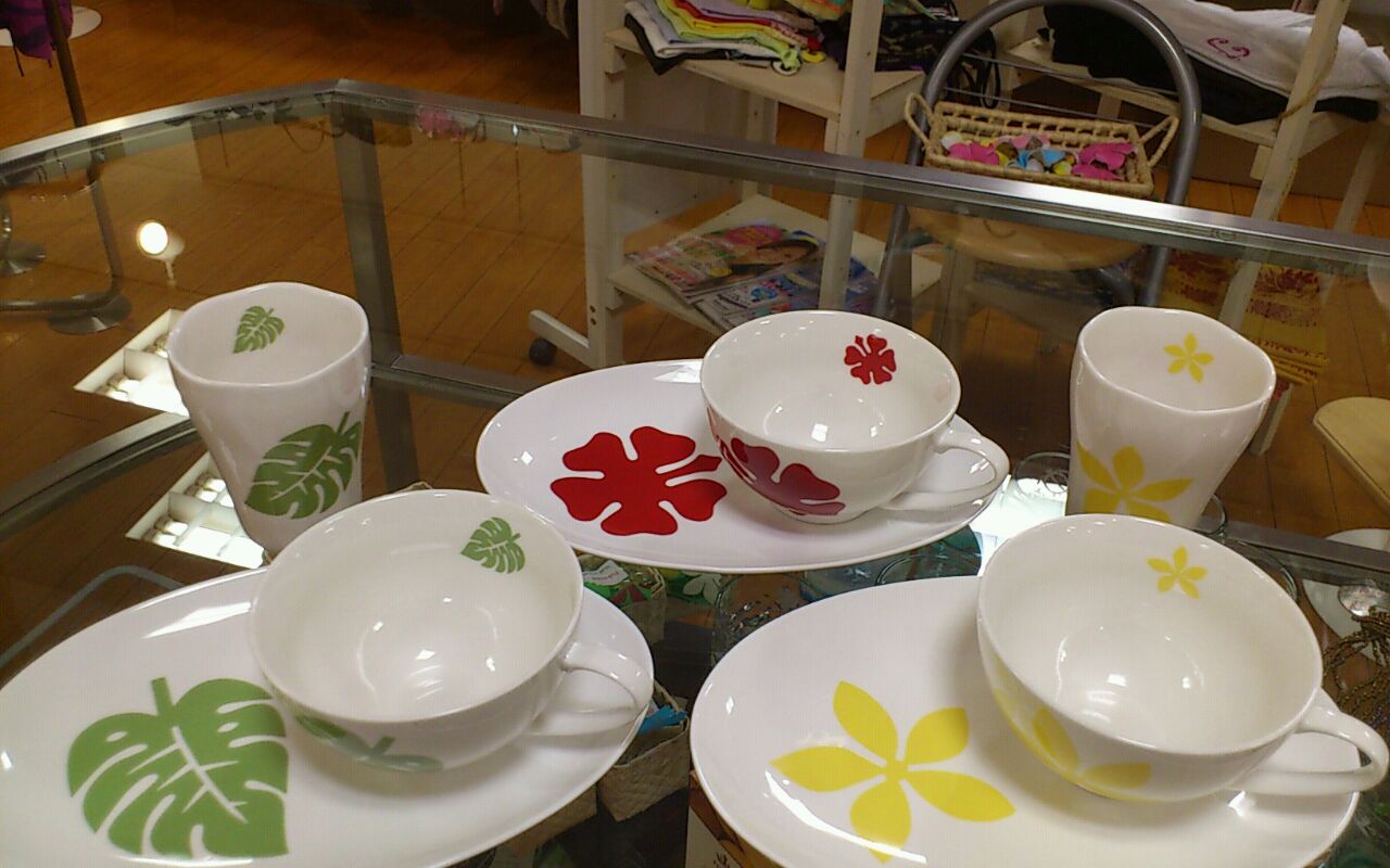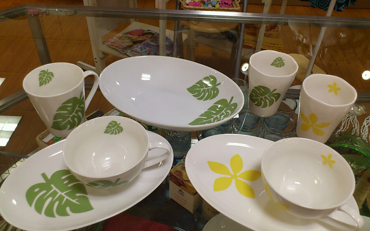モンステラシリーズで入荷しました(^-^) 柄で一番人気は このペールグリーンでのモンステラ柄! 定番オーバルプレートとスープカップに加え マグカップ(左上)本体価格1000円 ロコモコプレート(中央上)本体価格1600円 今回はビアマグも本体価格800円で初登場です(^^)d(右上) 自分用にシリーズでオーダーしている方も増えてきました お客様用に プルメリアや ハイビスカス柄なんてどうですか? もう少し大人っぽく!なんて方には ウル柄の ラウンドプレートとマグカップのセットなんてのもあり? お時間少しいただきますが あなただけのオーダーもできちゃいますよ☆ ご相談くださいね 〈Sayuri〉 PR