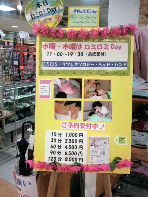 今日はBirthdayでした(^^)今日は勤務でしたが 昨日は何の予定もない久しぶりの休日 それならばと… 『ロミロミ』受けてきましたぁ~♪ 90分のロミロミは まさしく至福の時 自分へのご褒美にしてみました(笑) リンクにある「Aloha Smile」の小山さんに委ねてきましたよ ご自宅のサロンに伺うつもりが なんと今は(水)(木)と大谷地のサロンにいらっしゃるとのこと(^-^) 今までアクセスの問題で行けなかった皆さんも 地下鉄大谷地駅直結となると気軽に予約できちゃうかも(笑) 大谷地のサロンにご興味のある方は 下記までご連絡くださいね 〈子供服&婦人服の店 トリム 小さな巨人の店〉 地下鉄大谷地駅そば CAPO内2F TEL 011-896-1000 「ロミロミについて~」とお問い合わせくださいね♪ ロミロミ中の私と(笑) 小山さんと満足顔の私でした 〈Sayuri〉 |